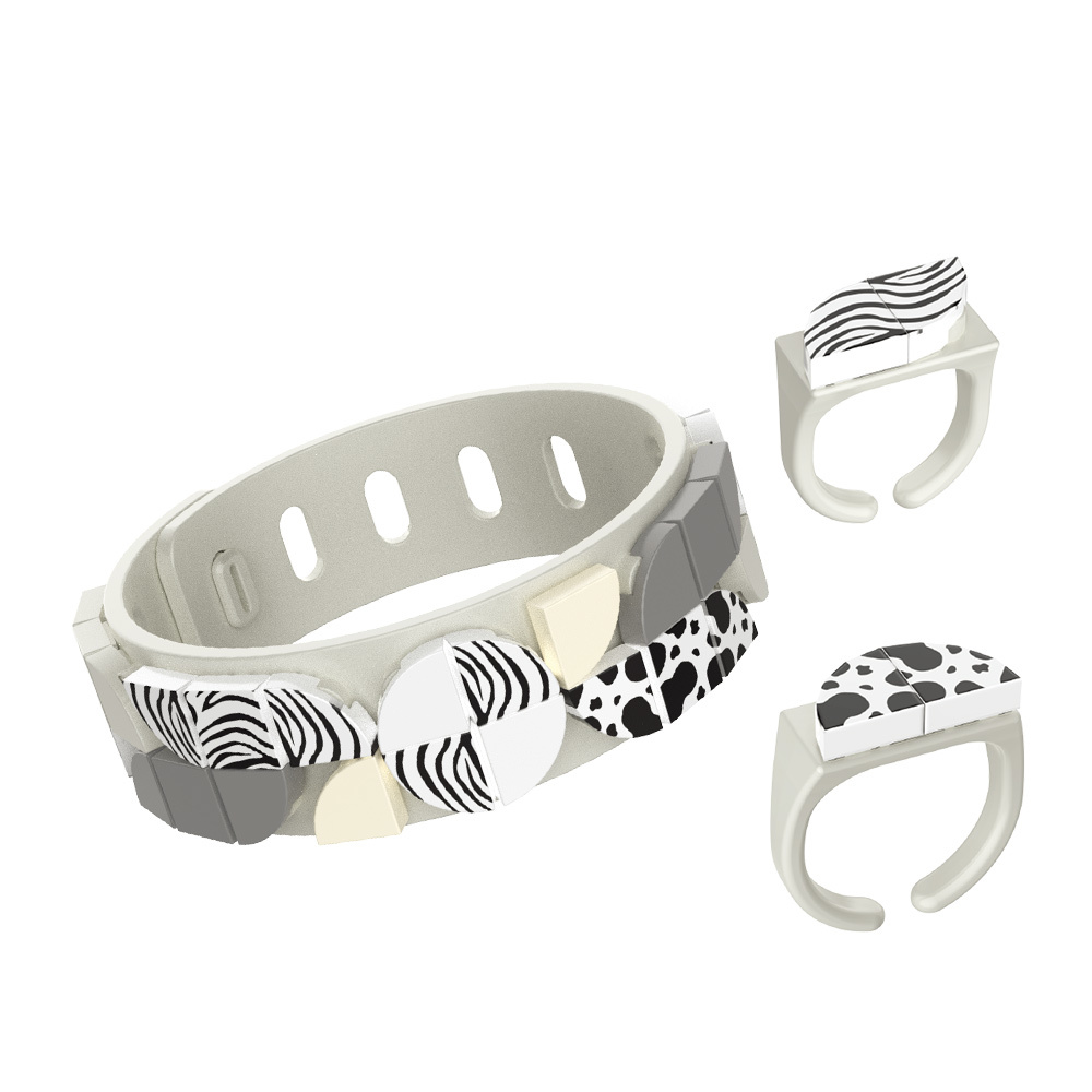 積木顆粒與手環創意結合,碰撞出穿戴新潮流。豐富顆粒滿足個性DIY,隨心情、服飾任意搭配,化身設計大師,show出無限創意。