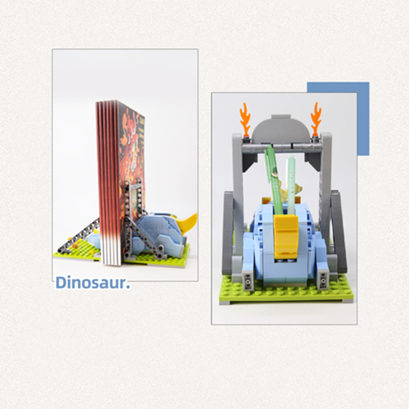 三角龍身體正中央,可當筆筒, 可根據實際需求,拉開三角龍放置書本